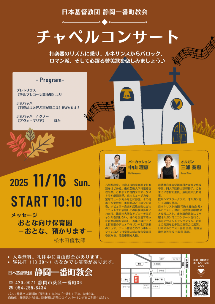 2025年11月16日チャペルコンサート・礼拝予告